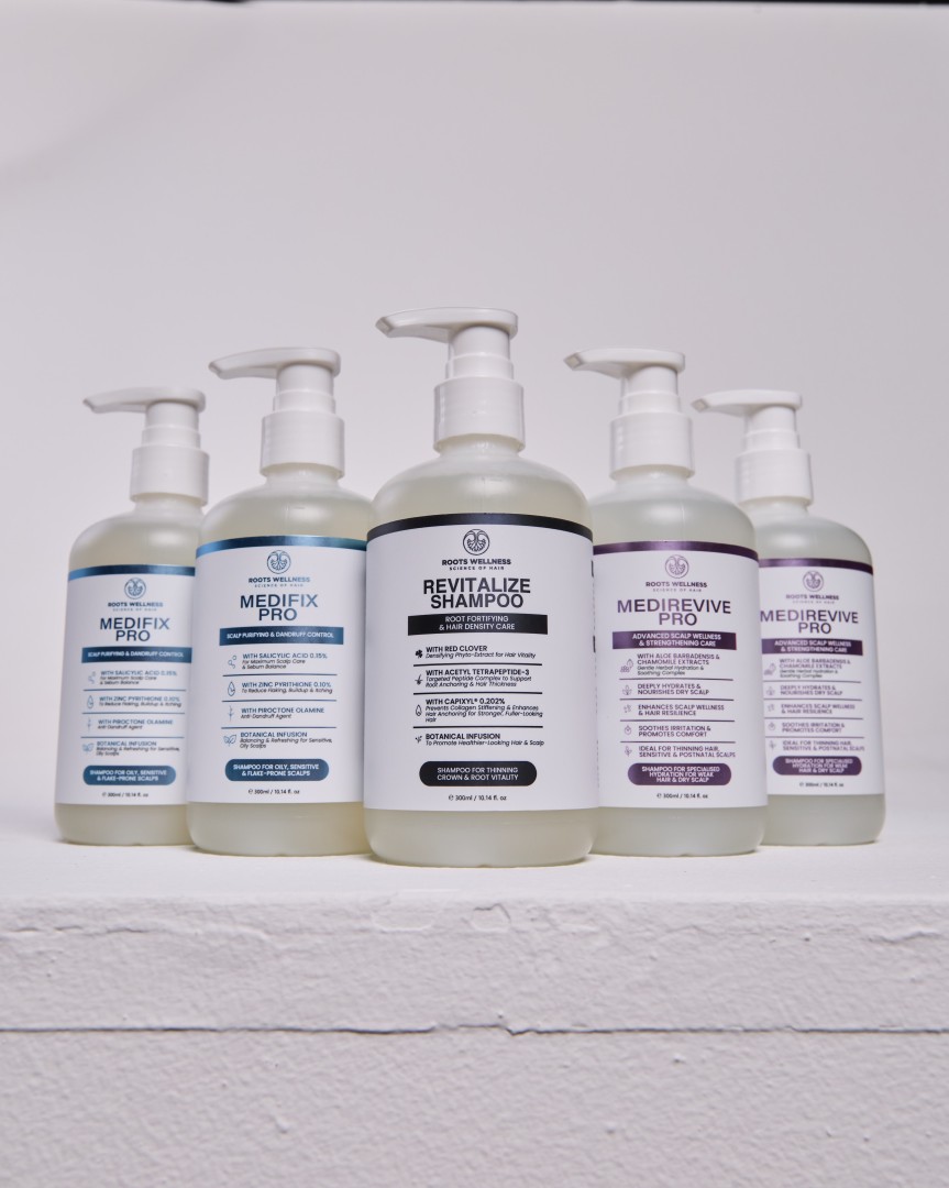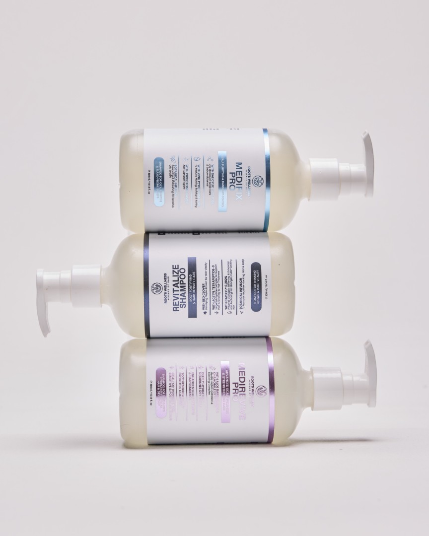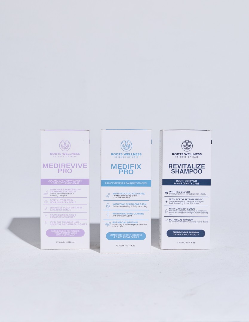 Untuk itu, Roots Wellness memperkenalkan Triple Shampoo Set – kombinasi tiga formula premium yang lengkap, direka khas untuk menyokong kesihatan kulit kepala dan rambut dari semua sudut. Set ini mengandungi Revitalize Shampoo, MediFix Pro Shampoo, dan MediRevive Pro Shampoo. Tiga produk ini boleh digunakan bergilir atau mengikut keperluan semasa, memastikan rambut anda sentiasa sihat, kuat, dan terjaga.